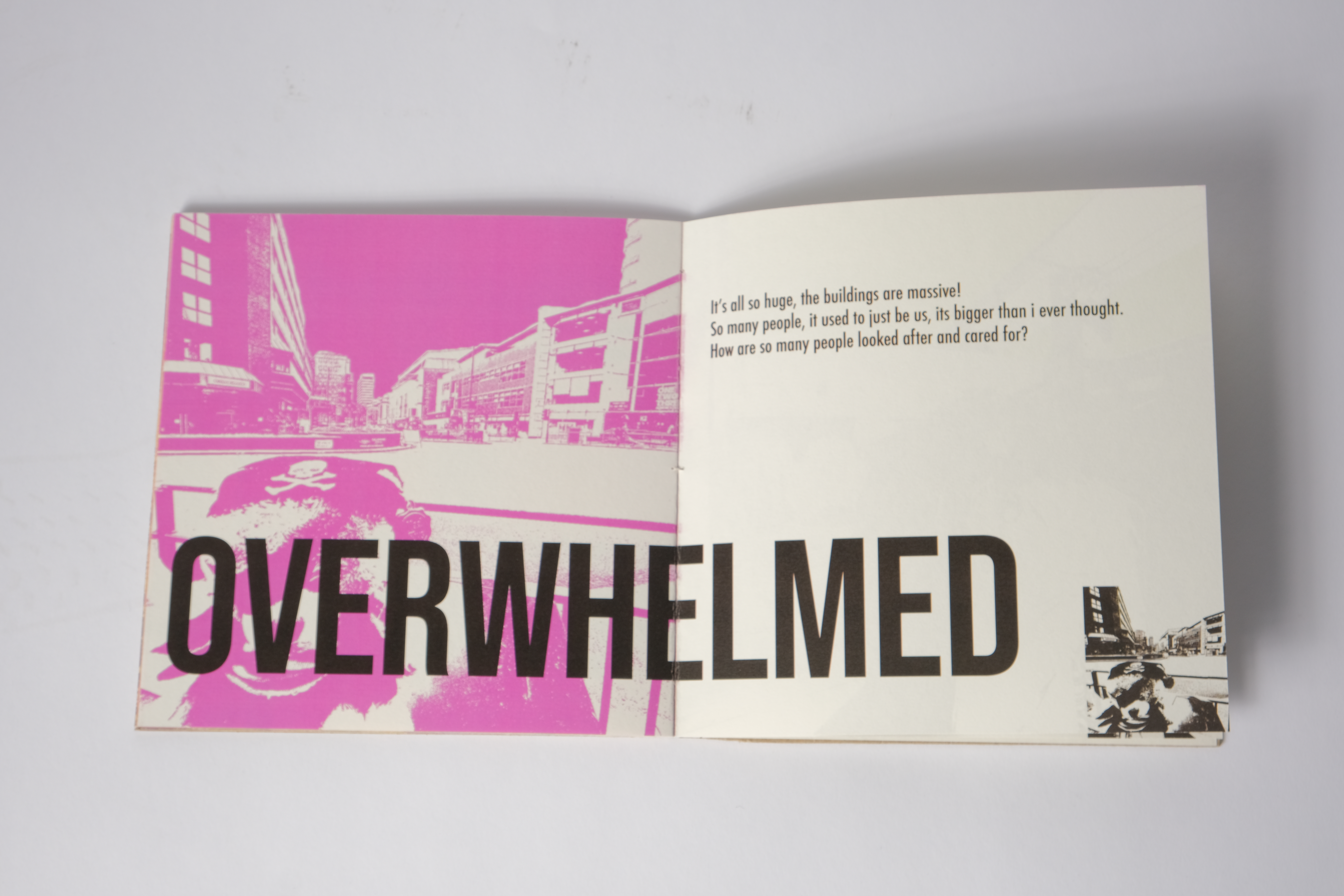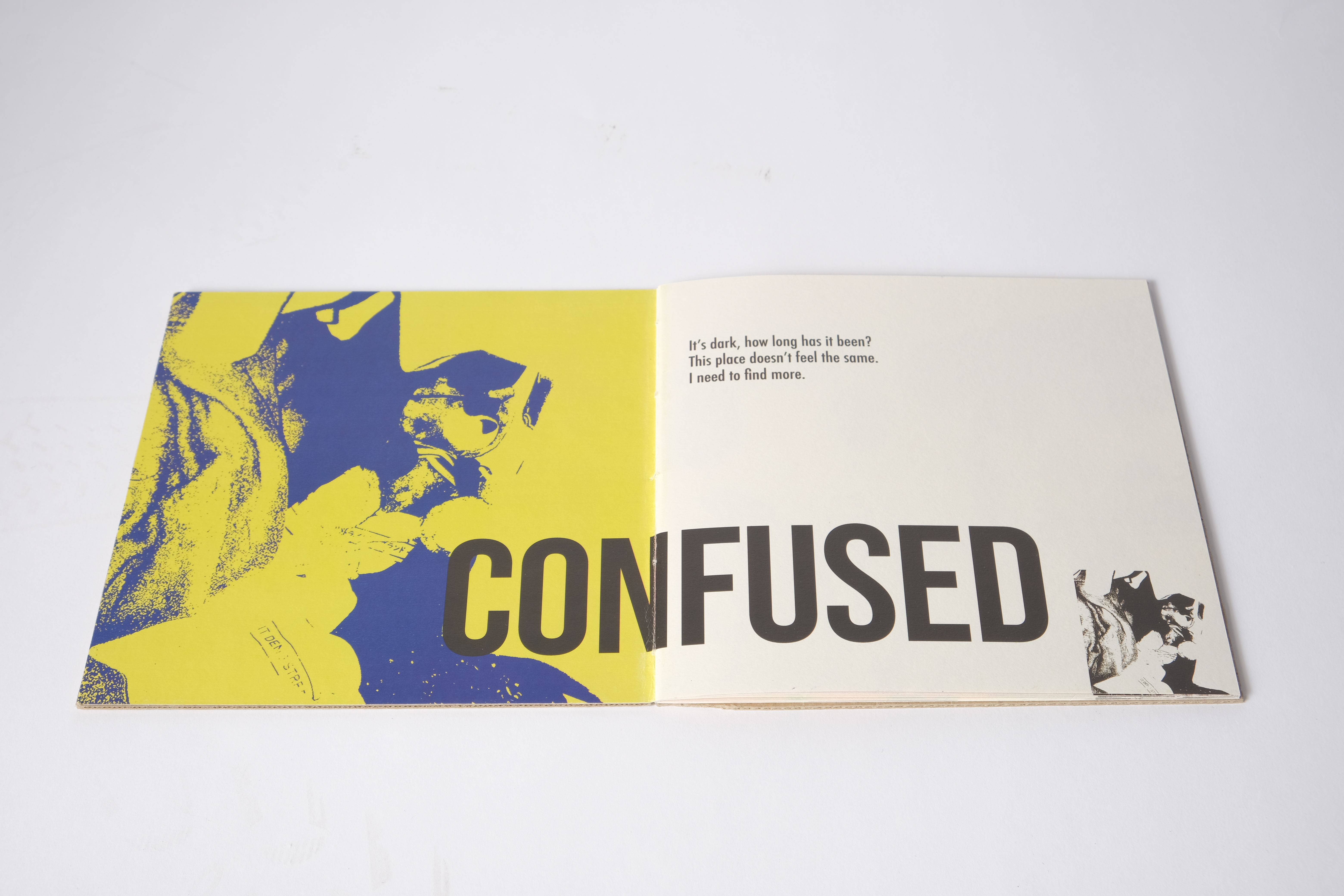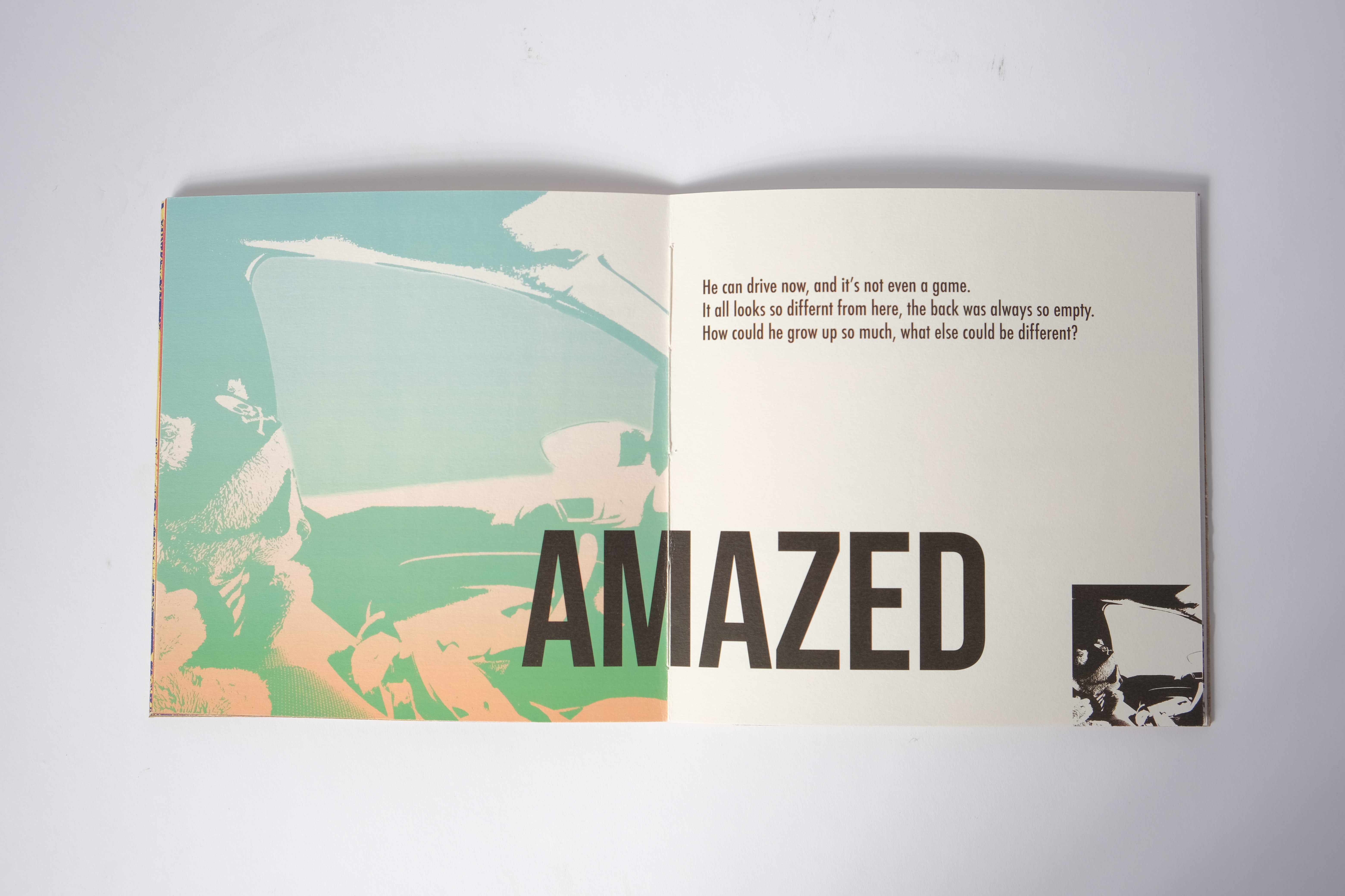 Each page expresses a certain emotion of the plush but can also be interpreted of those emotions we feel as we grow up, curiosity, confusion, and a feeling of being overwhelmed as examples.