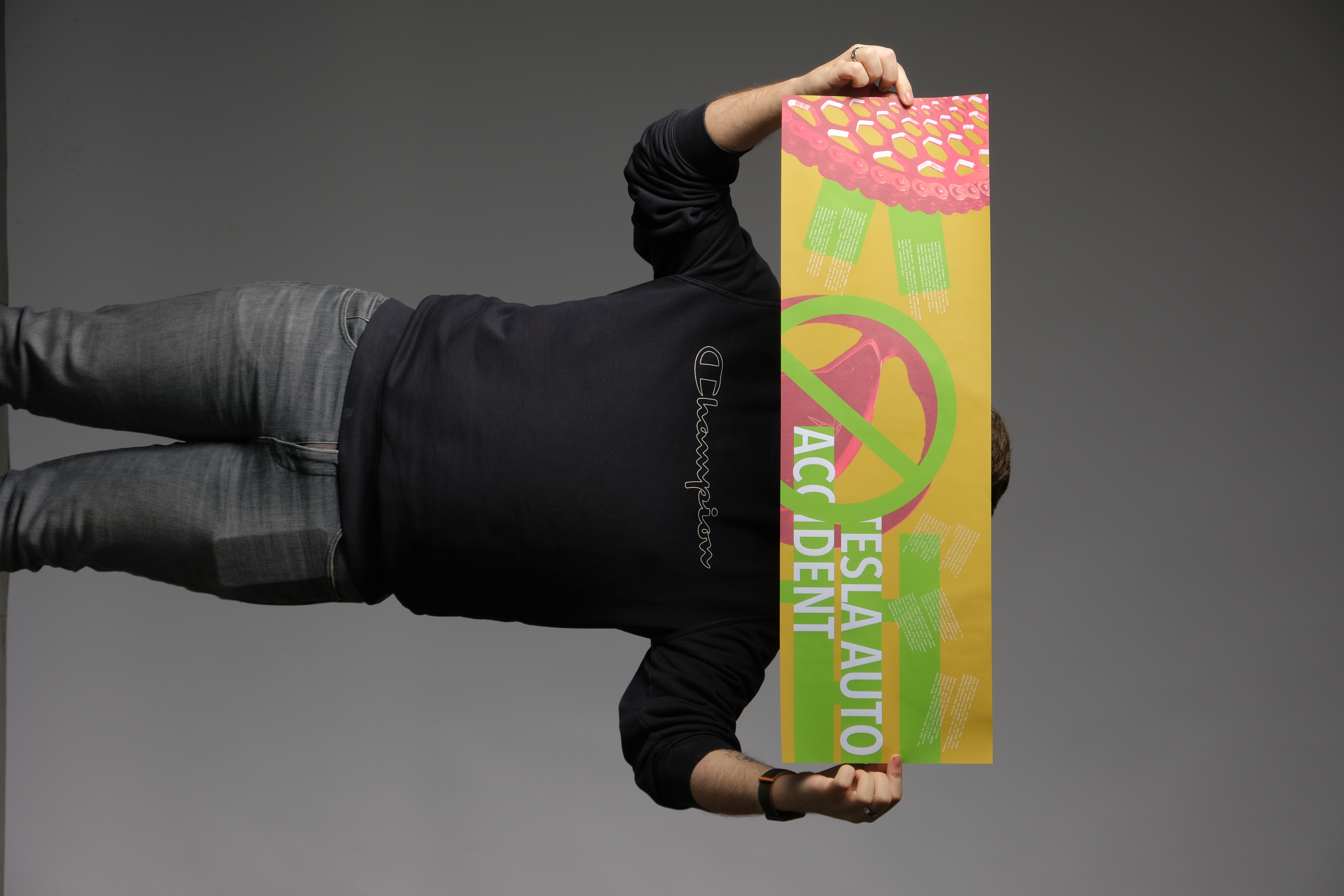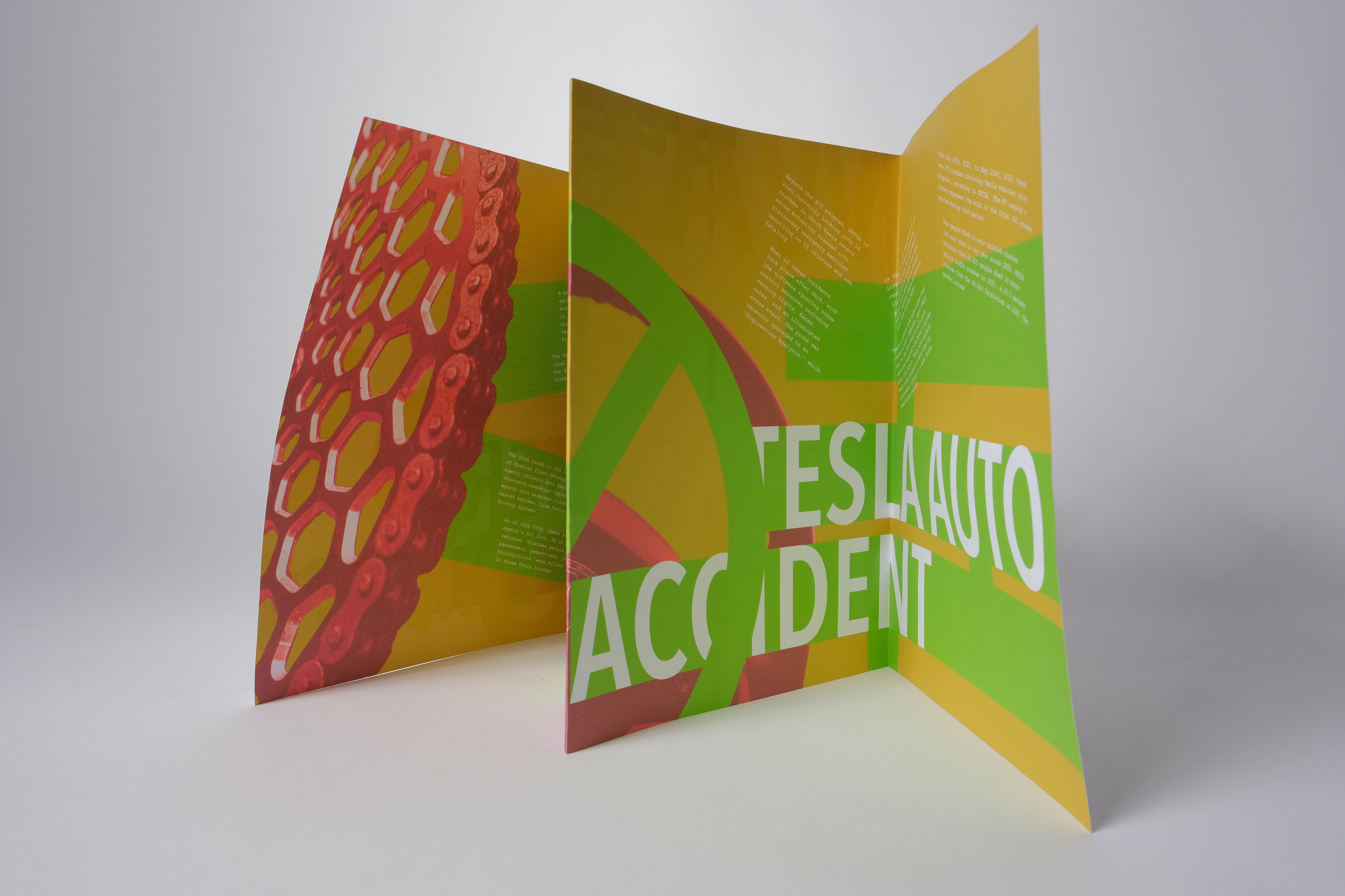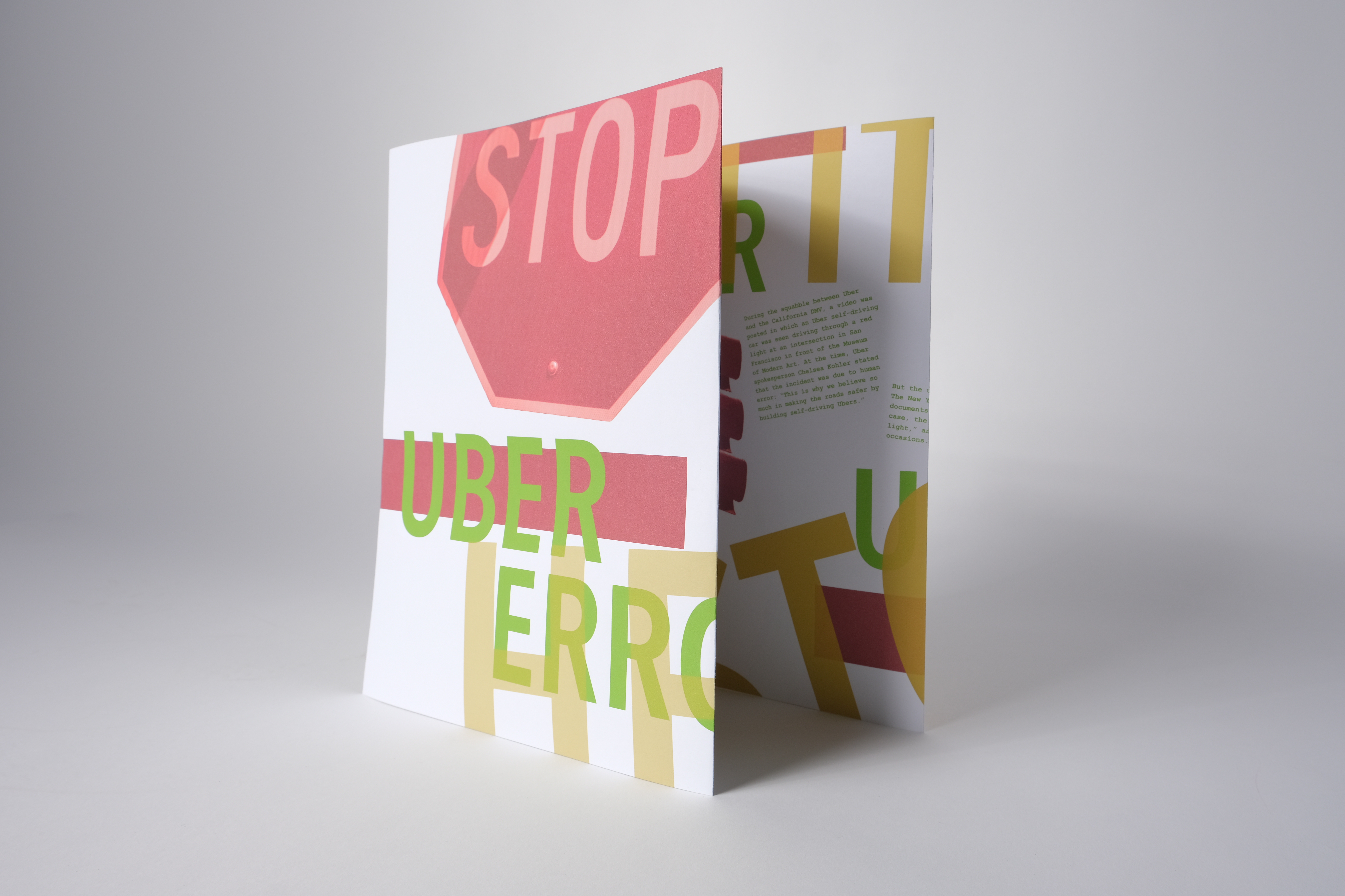 A concertina depicting a stylistic interpretation of two real world examples of when self-driving technology has failed.